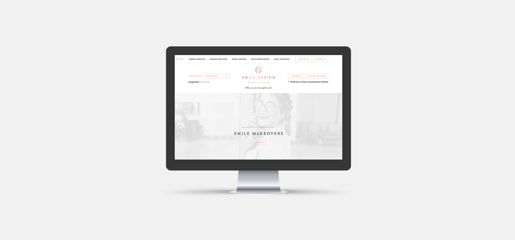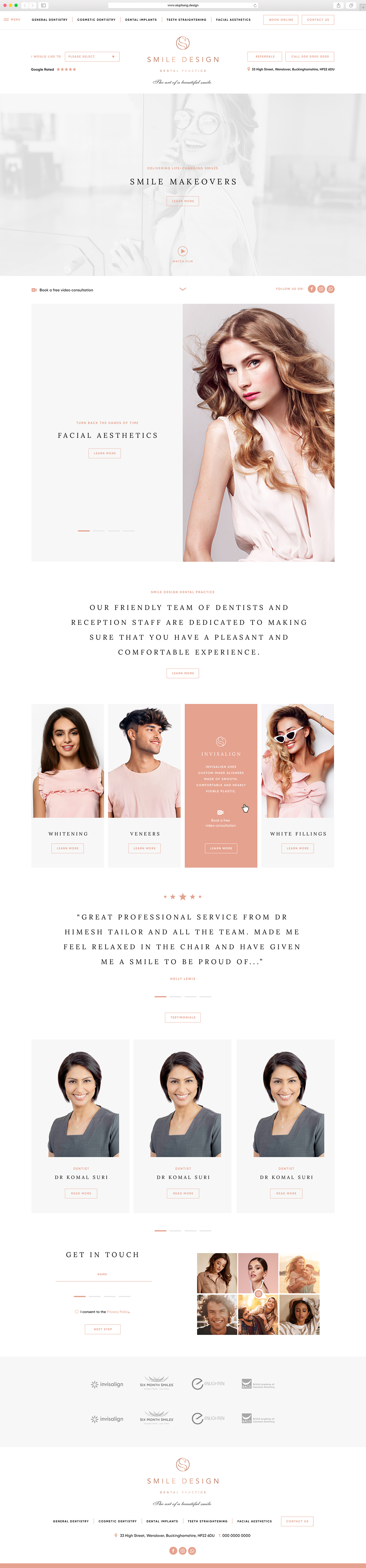 A young dentist opening their first practice, they would like to target young professionals in the area. I’ve designed their website using their brand value which is luxurious, high end and stylish.